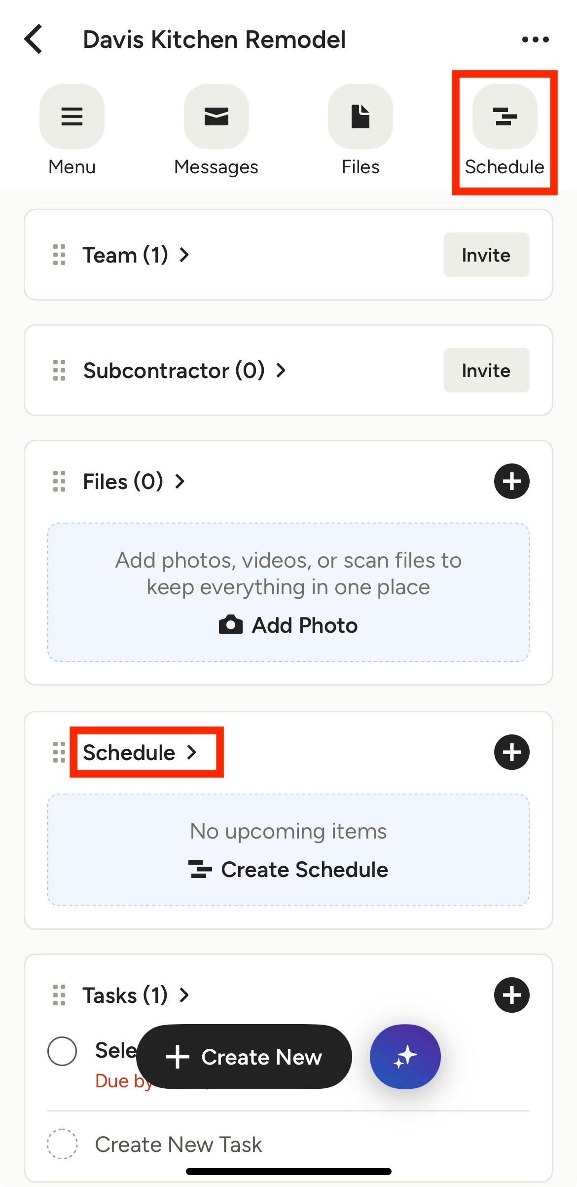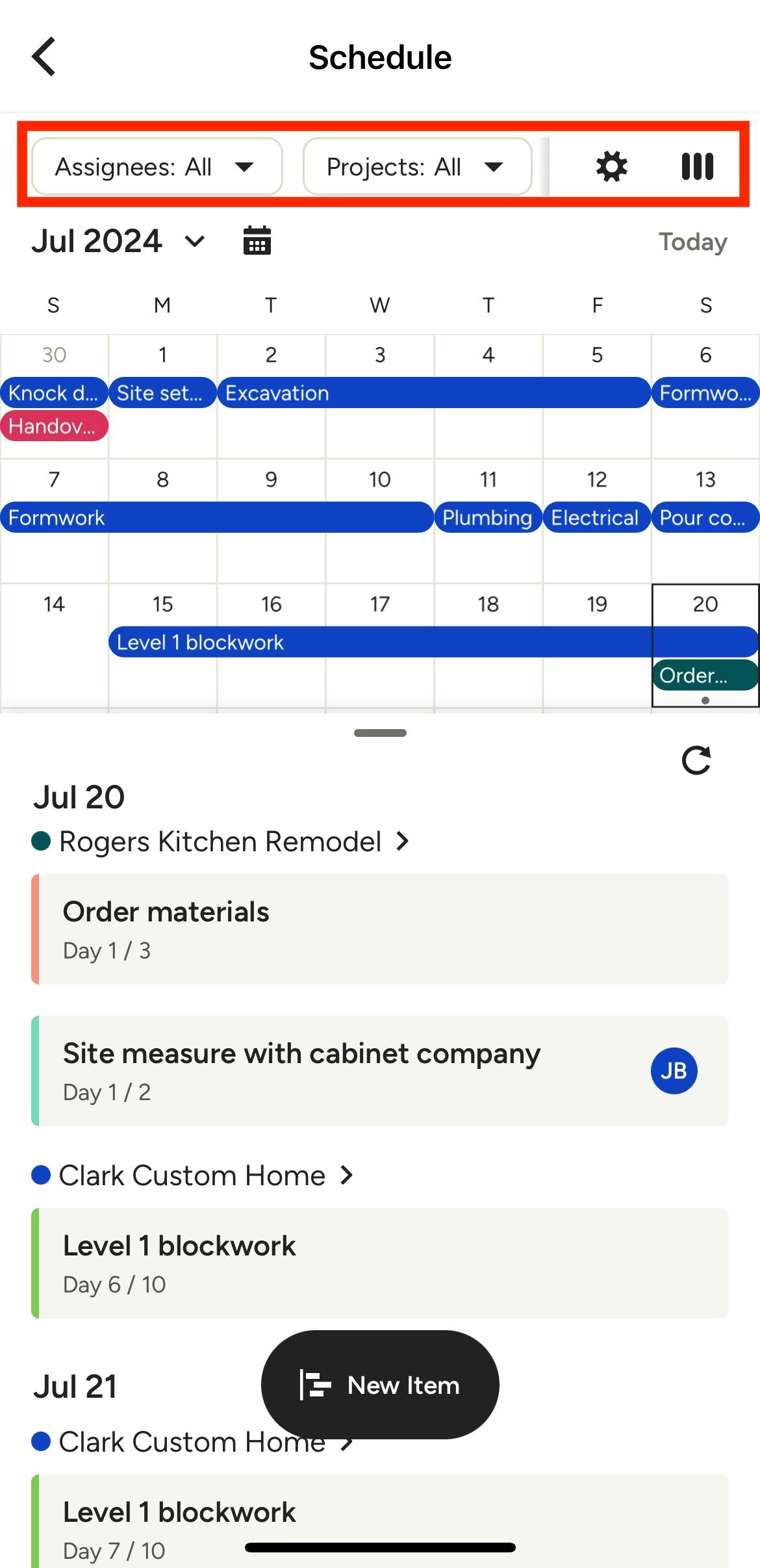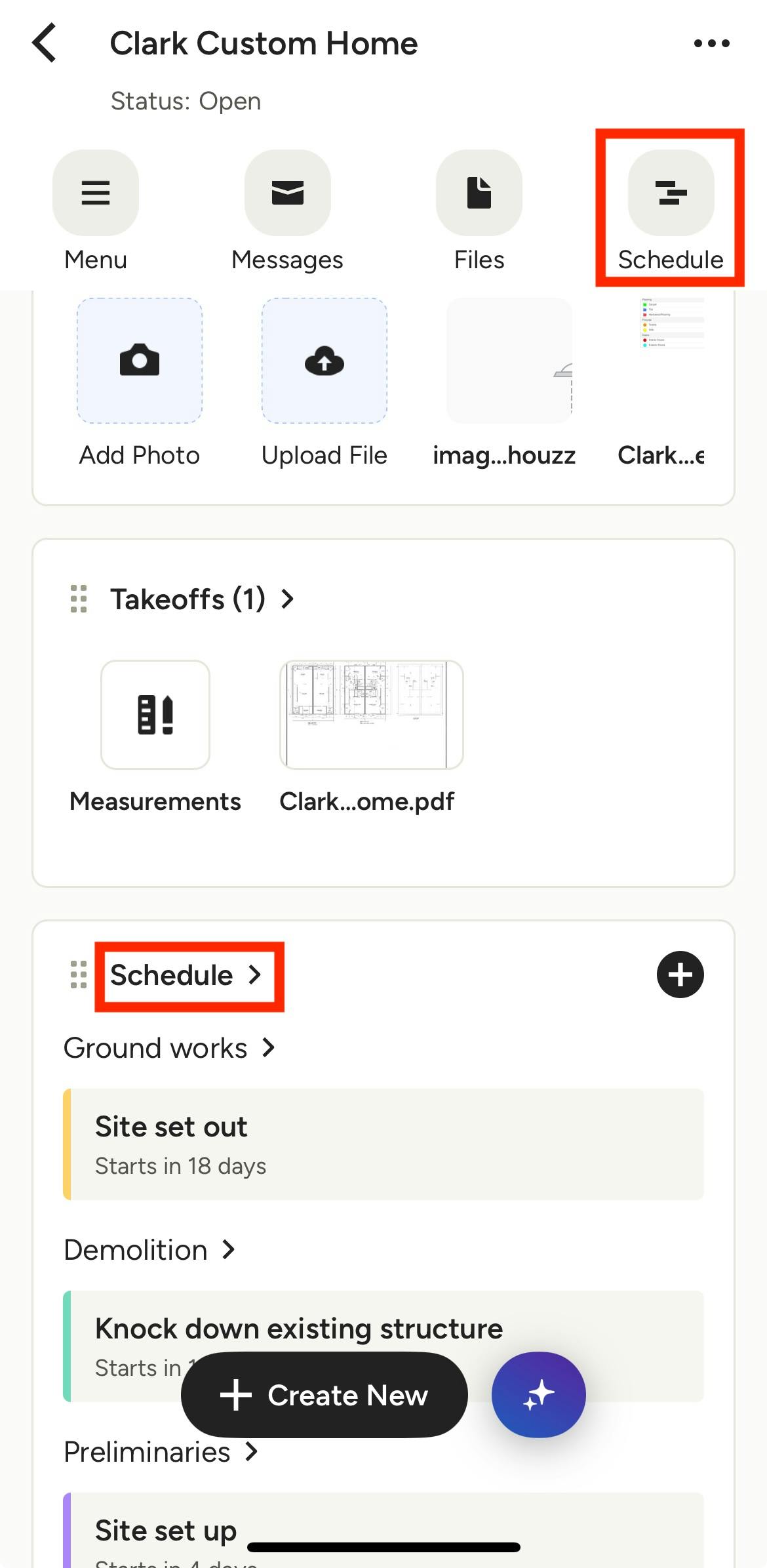If you already have a schedule created for an existing project, you can easily view schedule items on the mobile app.