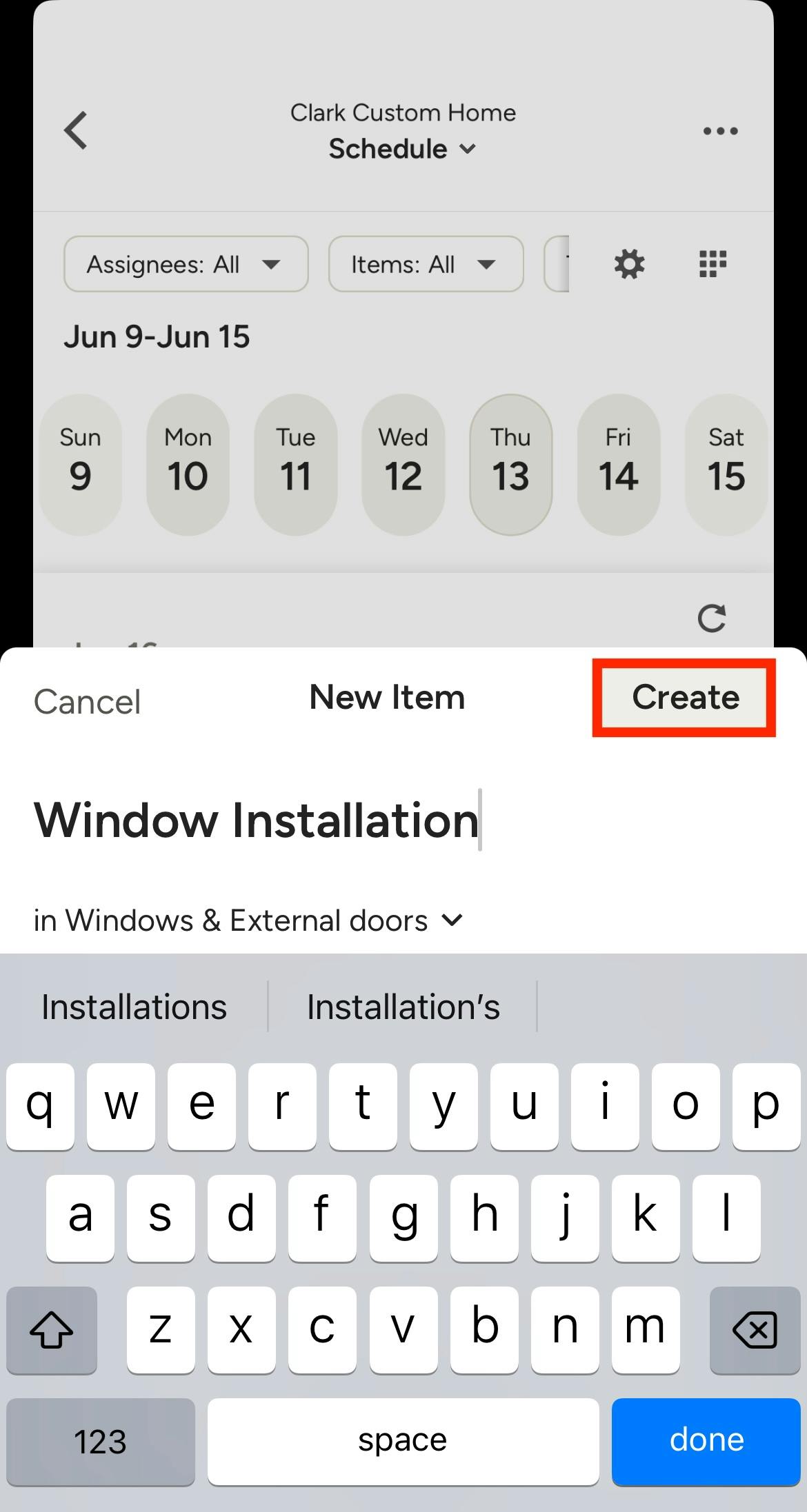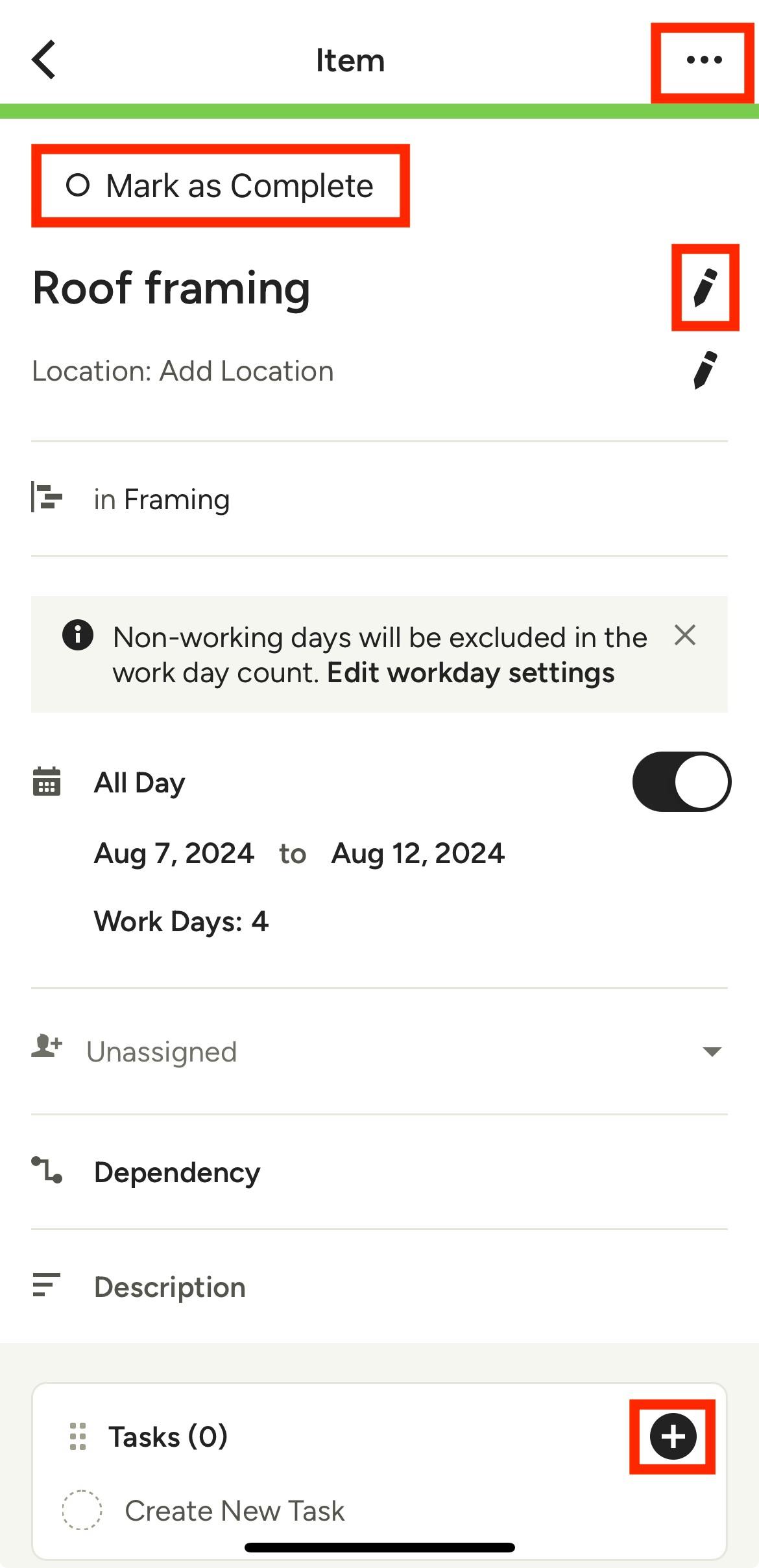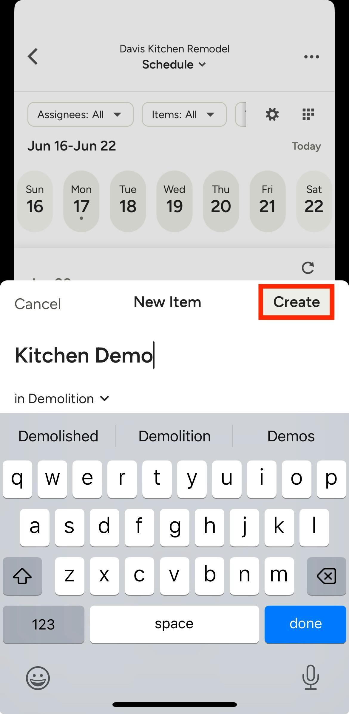 If you already have a schedule created for an existing project, you can easily view schedule items on the mobile app.