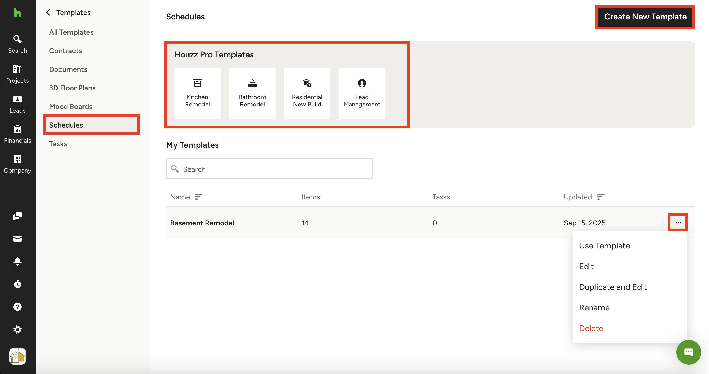 For a schedule template, you can either use one of the preset templates we have in Houzz Pro, or you can create your own template from an existing schedule.