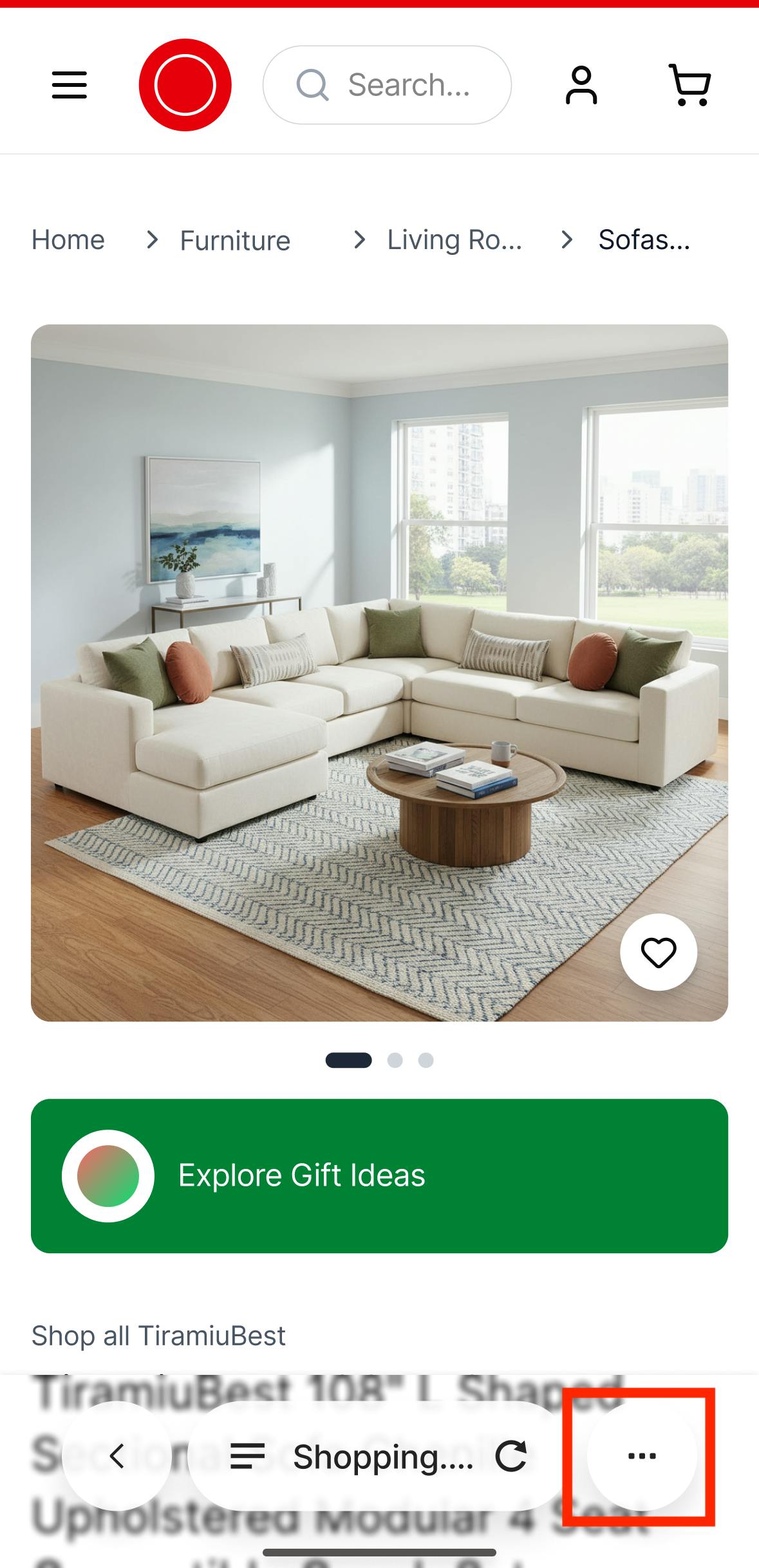 To clip an item on your mobile device, use your preferred browser to find the item. Once on the item detail page, open the browser options menu, which is typically three dots at the bottom of the screen.