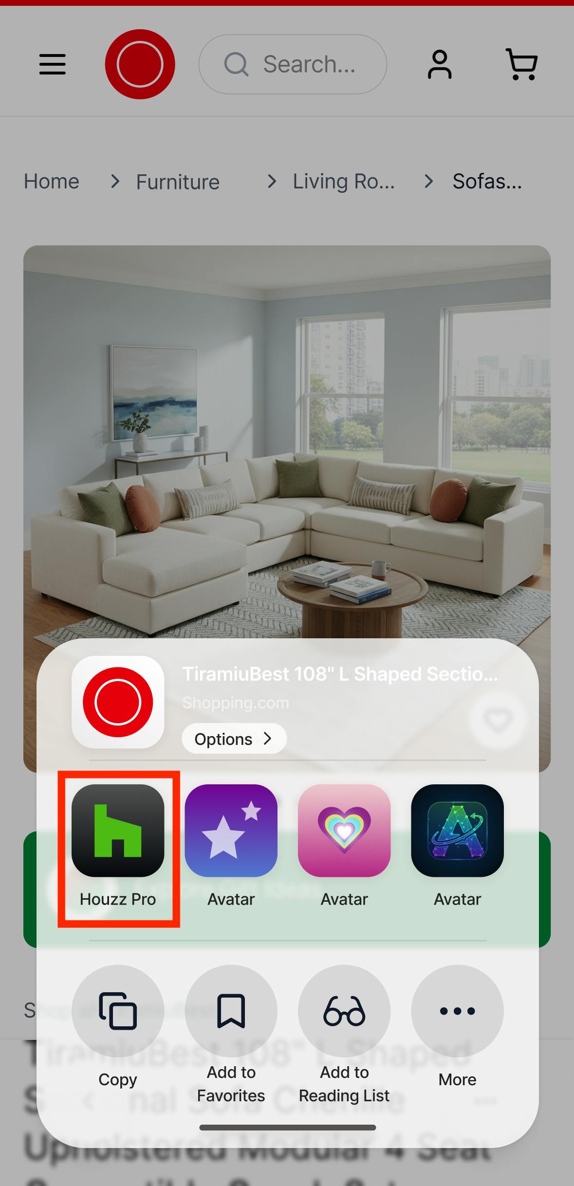 If you have the Houzz Pro app installed on your mobile device, you automatically have access to sourcing items anywhere with the Clipper — no need for additional setup, downloads, or extensions. This is currently only available on iOS devices.
