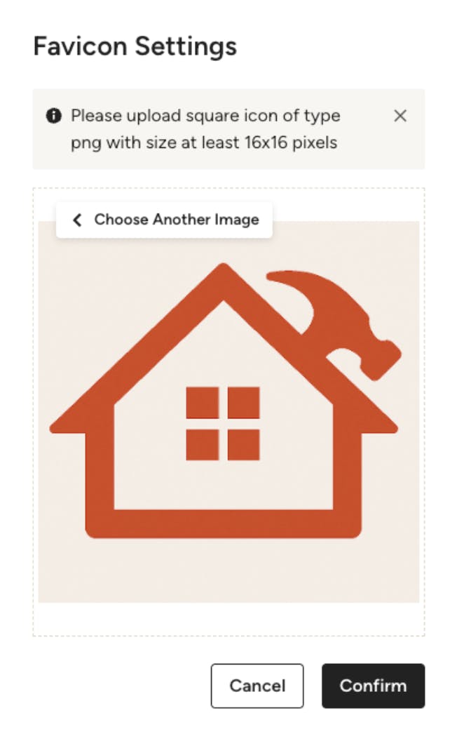 Ensure your image is a square PNG file with a minimum size of 16x16 pixels. Once selected, click Confirm to save the change.