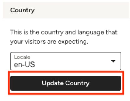 To do this, find the Country section under the Settings tab. Use the dropdown menu to select the correct region, then click Update Country to apply the change. This ensures any region-specific features or settings are correctly applied.