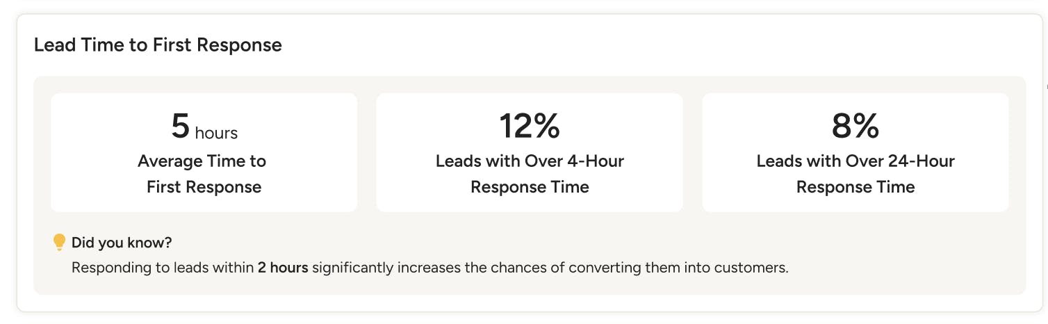 In this section, you will see how long it typically takes you and your team to respond to requests, as well as how that response time impacts conversion.