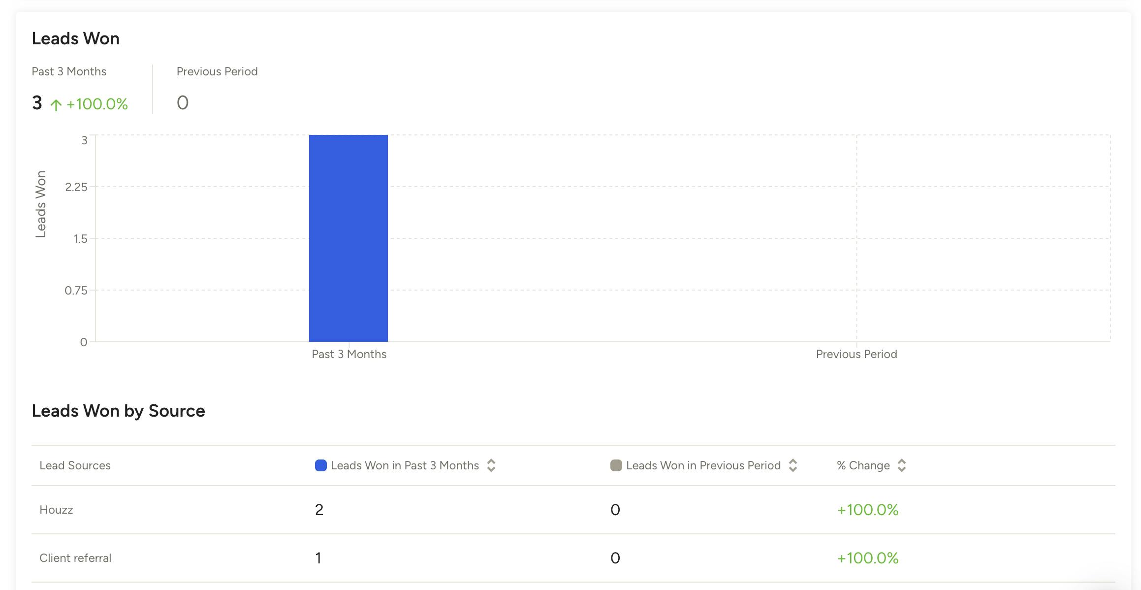 - Leads Won: This is where you’ll see a breakdown of the leads you’ve received that you converted into customers.