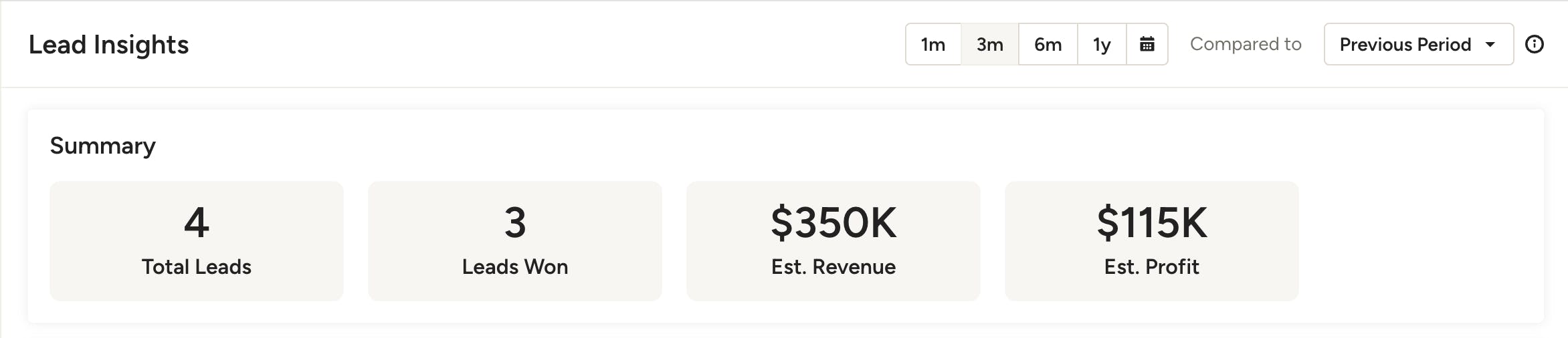- Estimated Profit: This is where you’ll see a breakdown of the estimated profit generated from leads you won.
