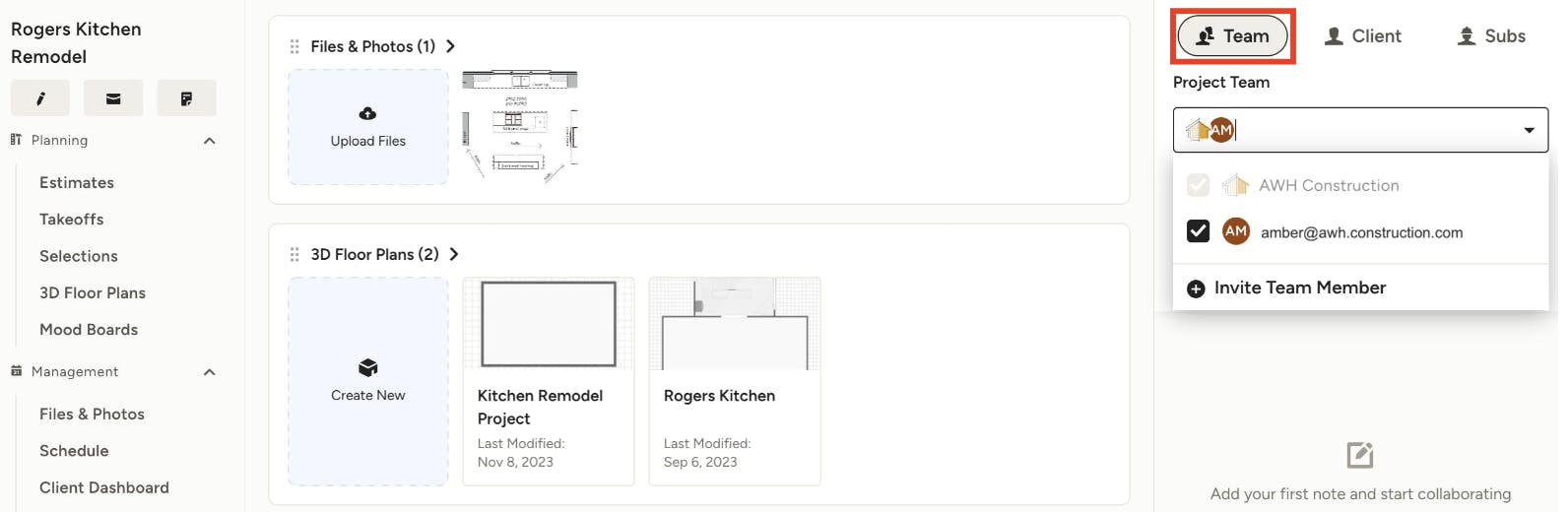 For more details about working with team members on Houzz Pro, read Inviting Your Team Members and Setting Permissions.