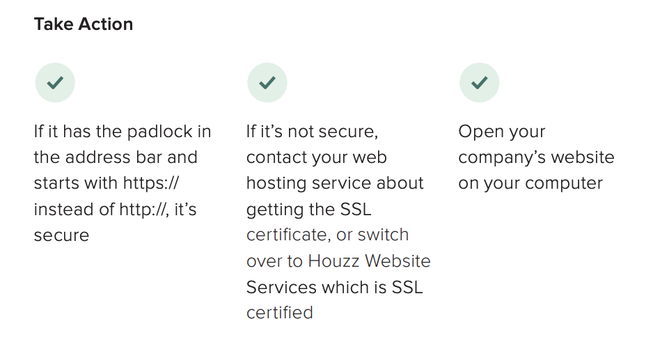 If you need to make a lot of corrections to your existing site to qualify as responsive, Houzz Website Services is a service with professional templated websites that are automatically mobilefriendly. In addition, websites built from Houzz pull content directly from your Houzz profile, so they’re easy to use, and your Houzz Pro client success manager can handle it for you.