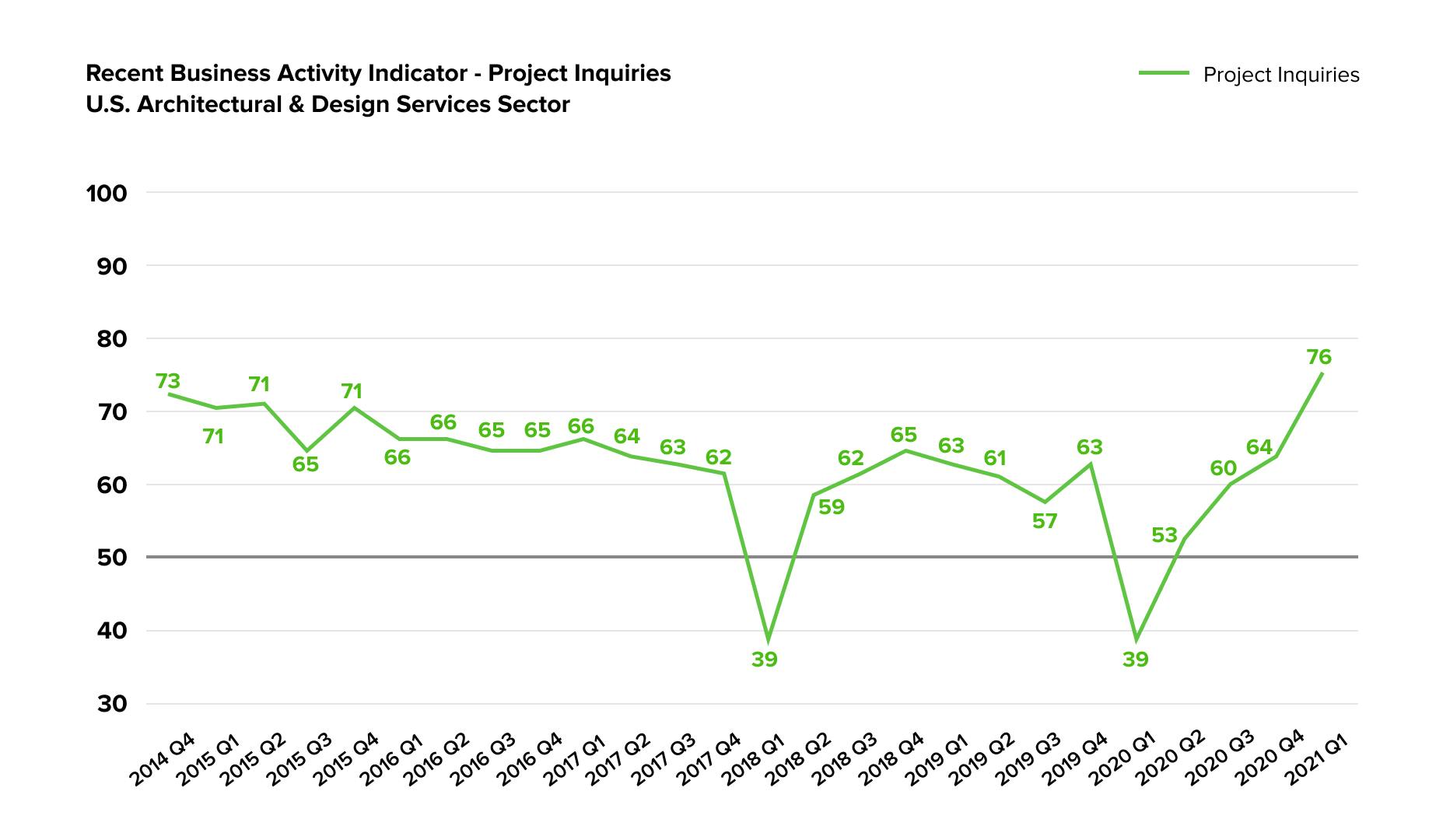 This robust demand for services indicates that wait times for projects to begin will get longer and that project timelines will shift and grow, resulting in sustained demand for these professionals. Wait times are already a month longer than a year ago at 9.3 weeks for construction professionals and 8.4 weeks for architecture and design professionals. Pent-up demand for services is one of the main reasons that 2021 looks like a standout year for the industry.