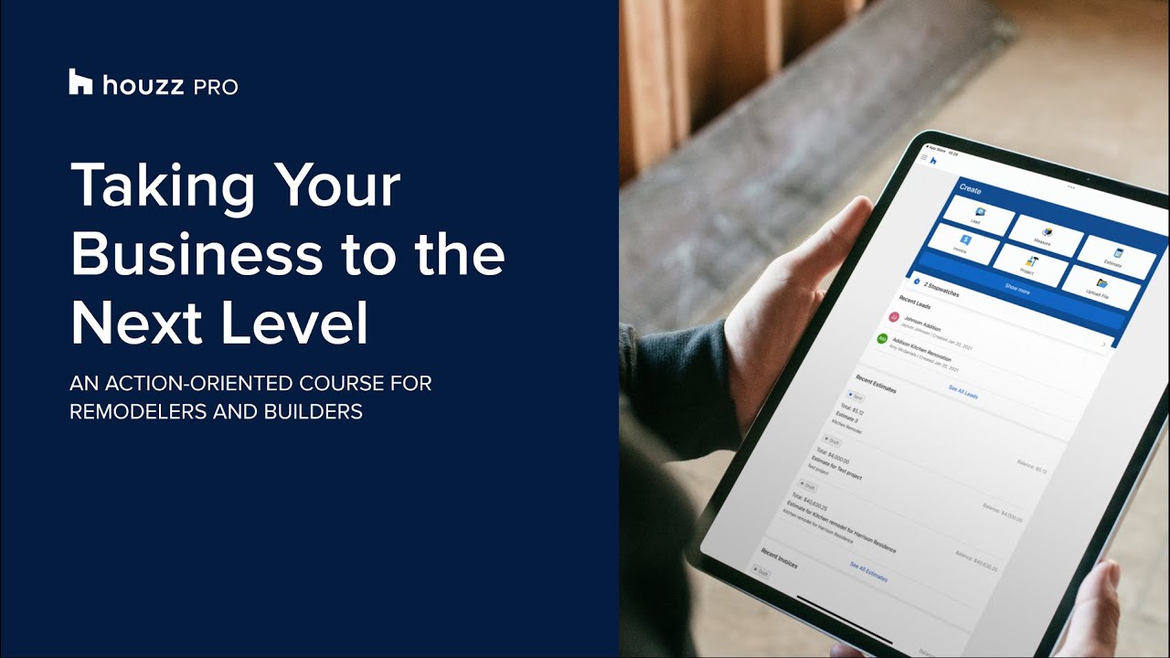 As MacDougall was already seeing great results from working with a right coach, taking Richardson’s business course for remodelers through Houzz Pro was a natural next step. Called Taking Your Remodeling Business to the Next Level, it covers all the important aspects of running a successful company: understanding finances, hiring and retaining a terrific team, managing time effectively, and much more. You’ll get video lessons, podcasts, quizzes, and supplemental materials, plus a certificate upon successful completion. Perhaps best of all, it’s free for all Houzz Pro subscribers.