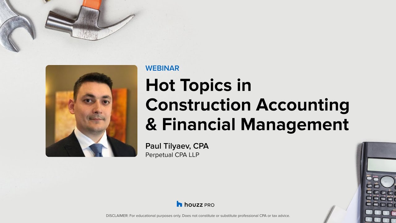 Join Paul Tilyaev, a CPA with expertise in the construction industry, for some of the most pressing financial and accounting management issues faced by construction professionals today, including: