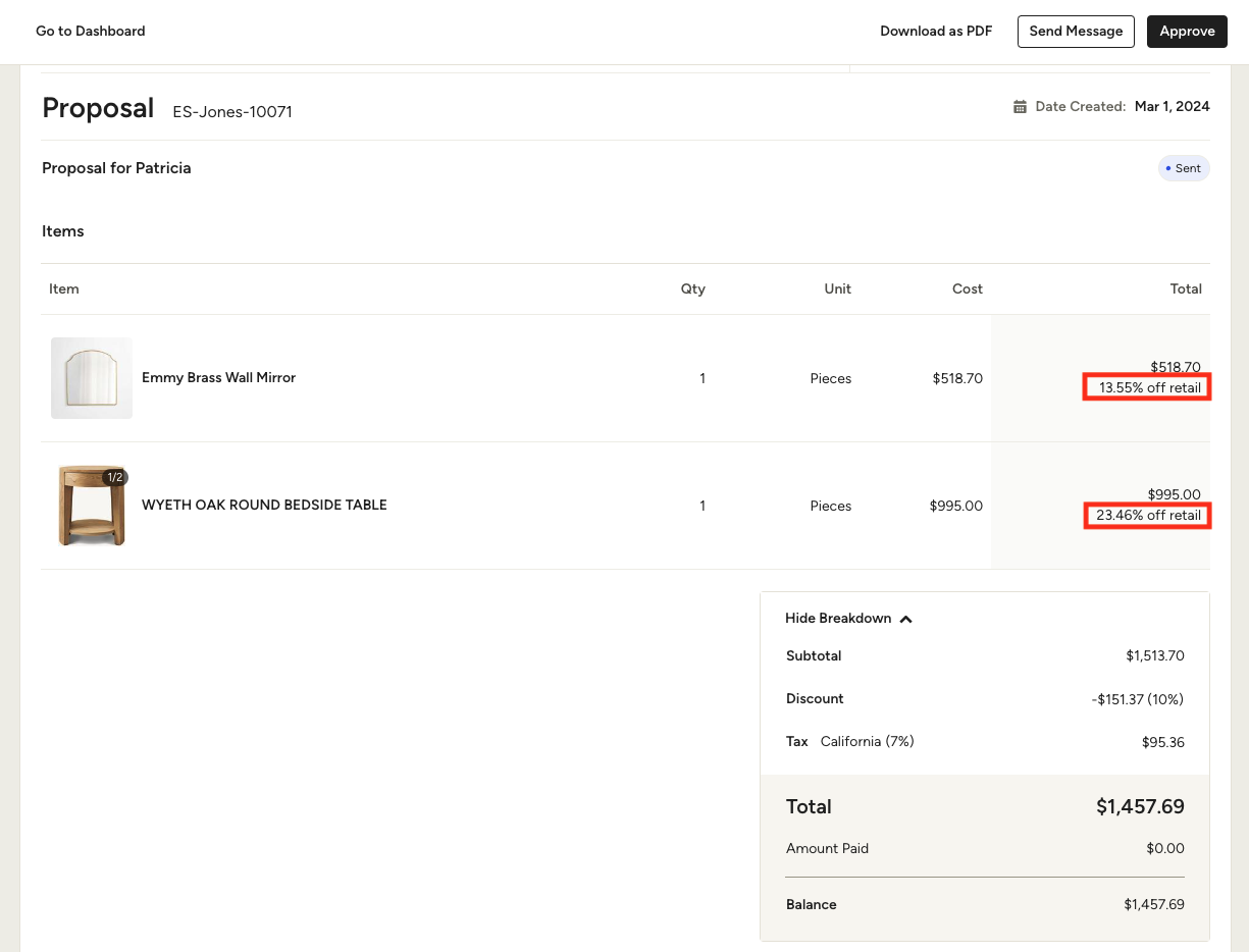 In cases you would want to offer a discount on the MSRP after all, the Houzz Pro software offers a super clean way to display the discount on MSRP to clients, see here how to do it.