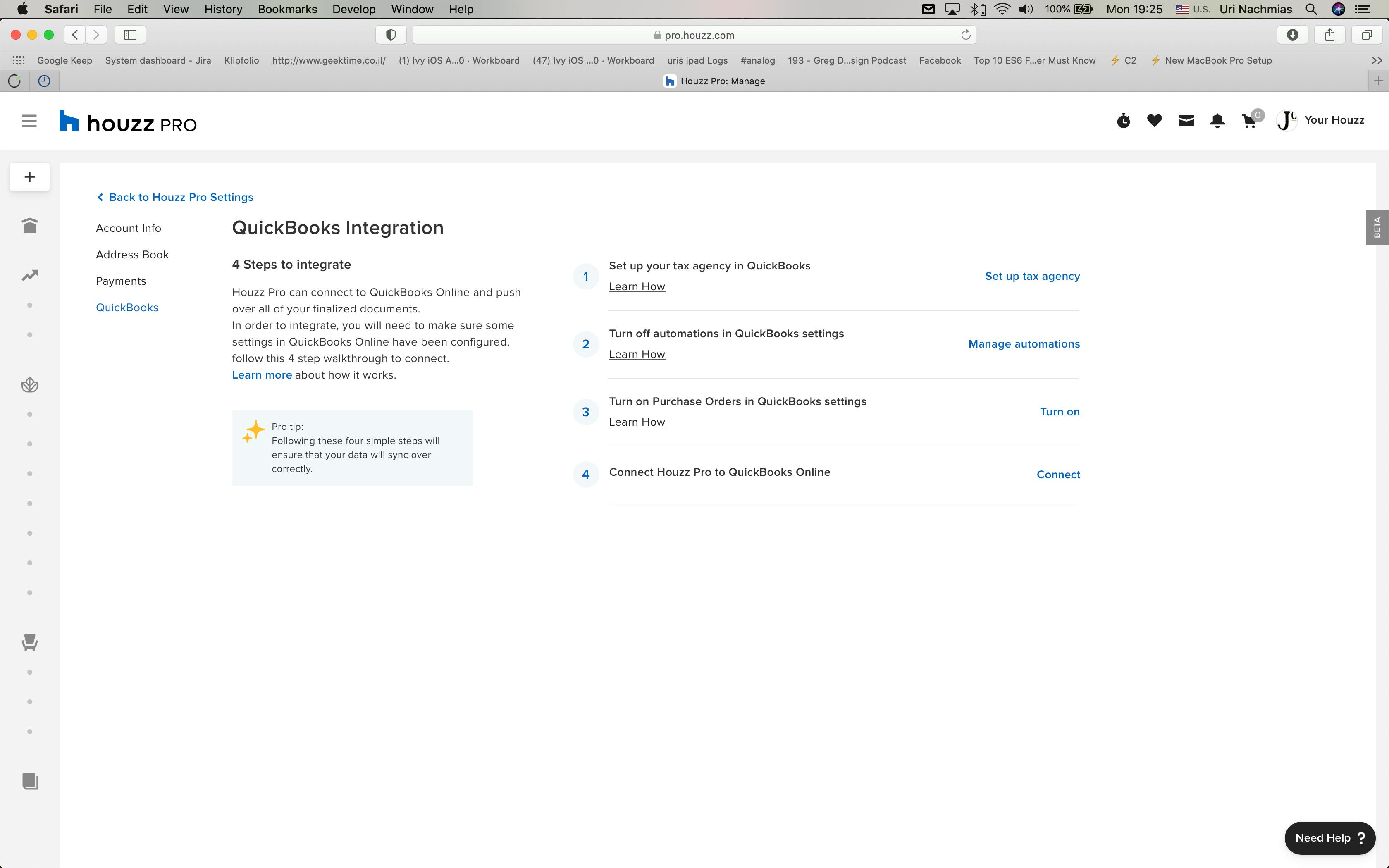 Follow these simple steps to setup your Houzz Pro-Quickbooks Online Integration: