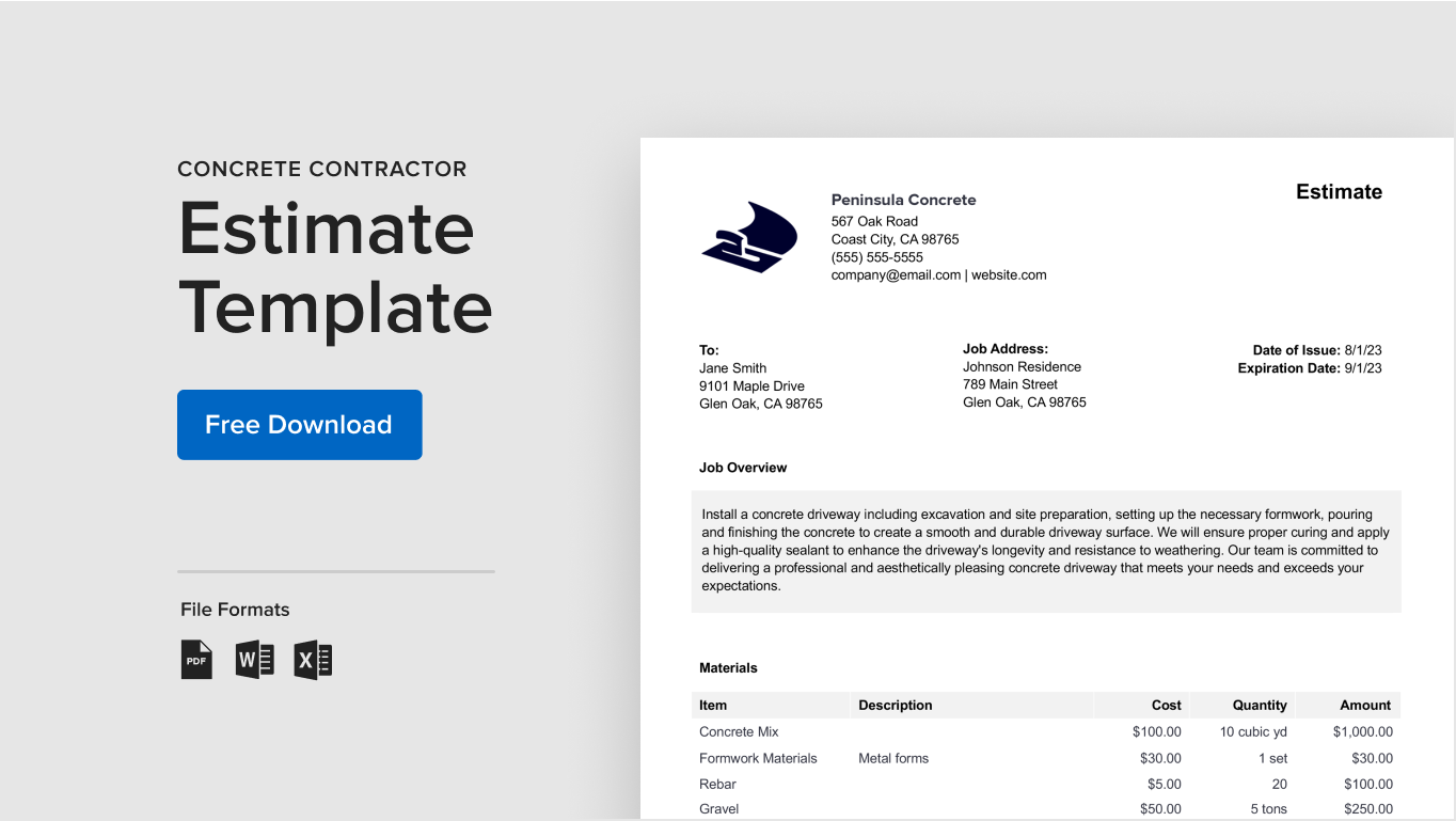 A construction time and materials contract template allows contractors to work on a time and materials basis by getting paid for actual hours worked and materials used. This unit-based contract is often beneficial when the project’s scope hasn’t been determined, and a fixed-price or deadline is difficult to establish, making it more flexible for contractors and employers.