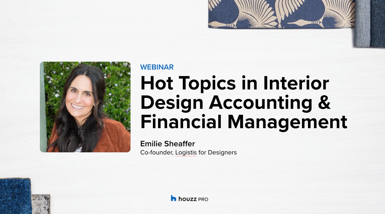 Join Emilie Sheaffer, an accountant with expertise in the interior design industry, for some of the most pressing financial and accounting management issues faced by interior design professionals today, including: